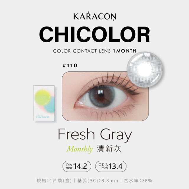 NEW ! KARACON CHICOLOR 38% #Fresh Gray 清新灰 月拋 (1P) |一片裝 台灣製造 |